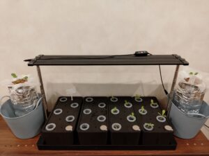 両脇は大根です。ペットボトルでの水耕栽培リベンジです。大きく育ちますように!